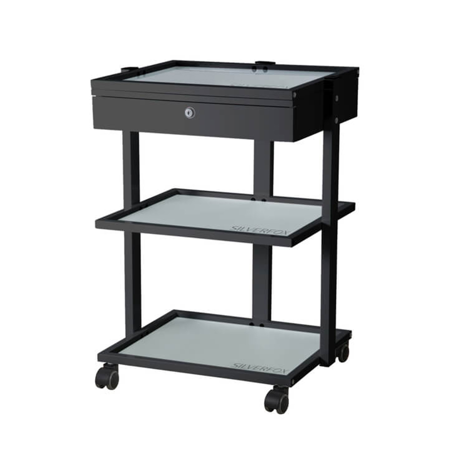 Trolley cart with 3 shelves and a locking drawer. Mobile on 4 wheels